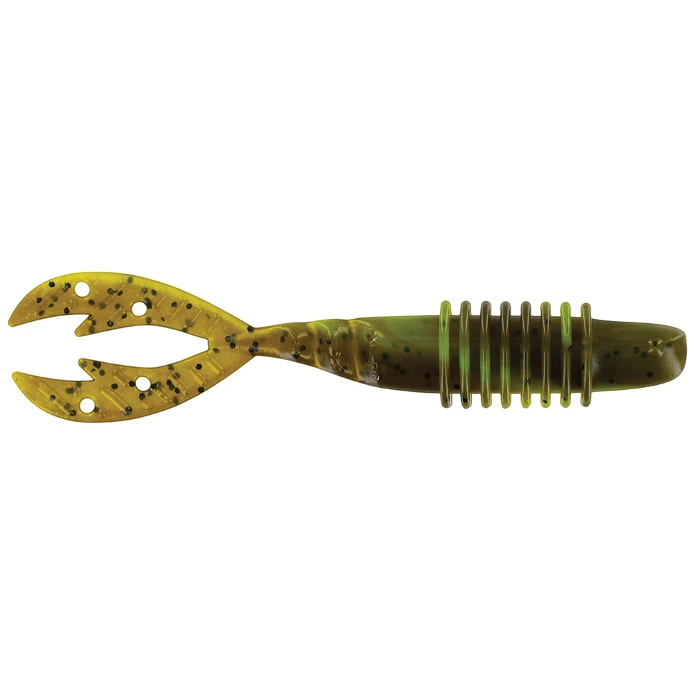 The ultimate trailer for vibrating jigs and swim jigs, the Big Bite Baits Kamikaze Swimon utilizes innovative design features to create an unmatched action that will have bass jumping in the boat. Built with a vertical body and tail profile to provide a baitfish appearance, the Big Bite Baits Kamikaze Swimon features a segmented body section, as well as, twin tails with unique ridges and holes, which creates an aggressive swimming action that will bring your favorite vibrating jigs and swim jigs to life. It also features a ribbed body to displace more water and help fish hone-in on it during low light and dirty water conditions. Loaded with salt and Bite Juice for an added level of attraction, the Big Bite Baits Kamikaze Swimon is perfect for any vibrating jig or swim jig applications.
