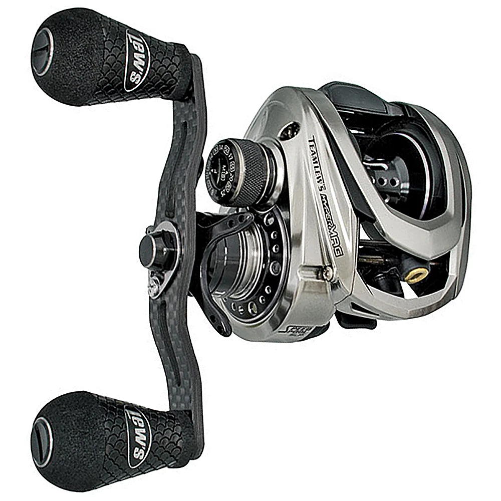 Built on the exclusive SLP Super Low Profile platform, which is Lew’s lowest profile design. The HyperMag is also Lew’s lightest baitcast reel, weighing only 5.4 ounces. The HyperMag baitcaster has a one-piece magnesium frame, C45 carbon sideplates and premium 11-bearing system with double-shielded stainless bearings and Zero-Reverse anti-reverse clutch bearing. Gears are hard-anodized aluminum alloy. The reel’s compact size is made possible by the reel’s innovative 32mm aircraft-grade Duralumin U-shape spool that starts and accelerates faster than large spools so it simply handles light line and lures better than traditional-size baitcasters, without compromising power and performance to also be able to handle all other bass fishing techniques.